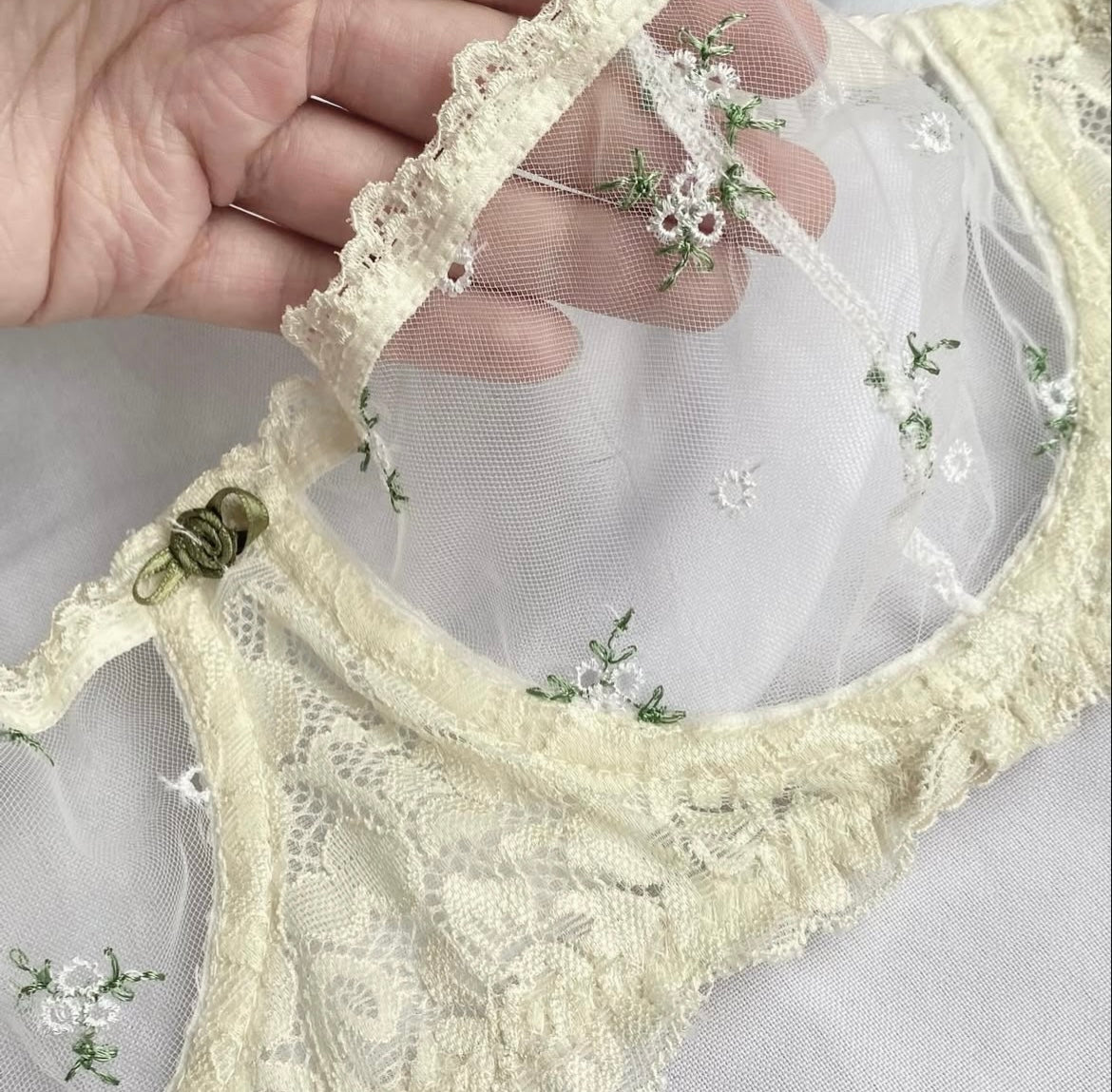 Súper delicado,bordado sobre tul. Ajustable en hombros y con aros para mayor comodidad.
